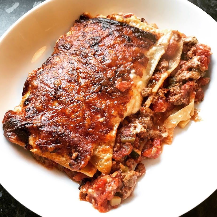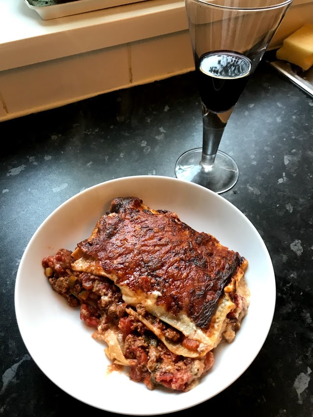 I hope you enjoy this lasagne as much as I did, it was a delicious and comforting meal, which was much needed the night before returning to work after having two weeks off. It’s also best served with a glass of the leftover red wine that you didn’t use in the recipe (I had a Chianti in the cupboard, probably a bit too nice to cook with, but it gave me an excuse to enjoy a glass with dinner!)