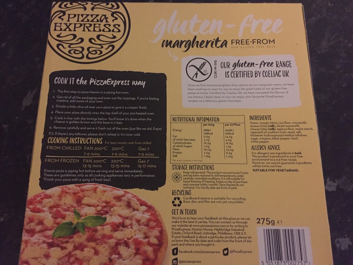 the low FODMAP diet in small portions, I often have lots of oats for breakfast or make my own gluten free oat biscuits to snack on to save money (see my recipe for my Cinnamon Oat Biscuits, Lemon & White Chocolate Biscuits and Dark Chocolate Flapjack also on the blog!) Overnight oats has recently become a food fashion, however if, like me, you’ve no idea what that even means or how to make them, then you can stick to classic porridge, then top it with some fancy chia seeds, cacao nibs and banana to make it instagrammable (surely that’s a word?!?) I would definitely struggle if I couldn’t have oats!7. Pizza Express Margherita Pizza