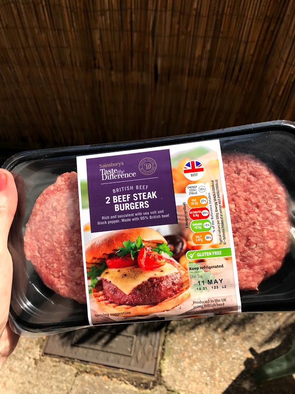 My all-time favourite burgers are the Taste the Difference Beef Steak Burgers in Sainburys, shown below. These are low FODMAP (no onion, garlic or gluten) and incredibly juicy!