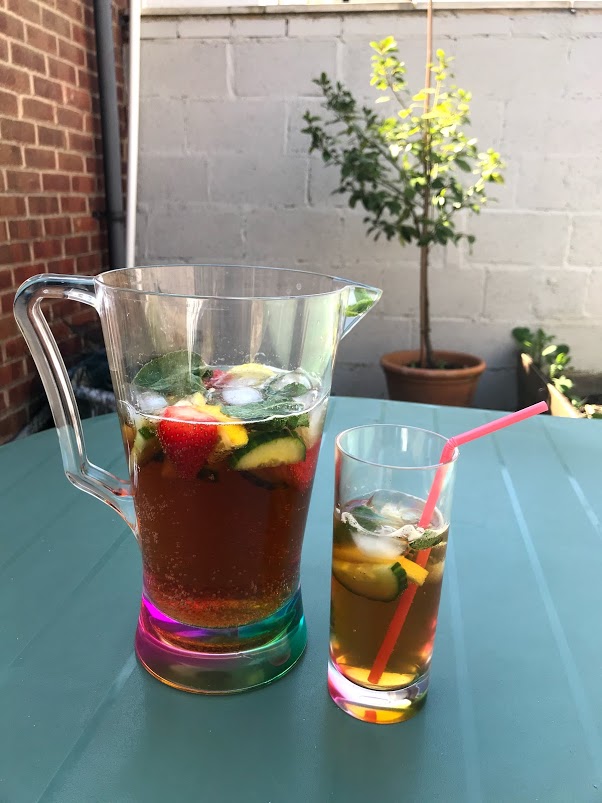 I served all the meat with Promise gluten free supersoft white sandwich rolls (currently £1.20 for three in Sainsbury’s), sesame buns (for my other half), Arla lactose free cheese, Schar gluten free/low FODMAP grissini breadsticks (go well with the dips above!), salad (lettuce, tomatoes, cucumber with a balsamic vinaigrette), tomato slices, a bean salad (not low FODMAP but I love a few edamame), and of course, a jug of Pimms!