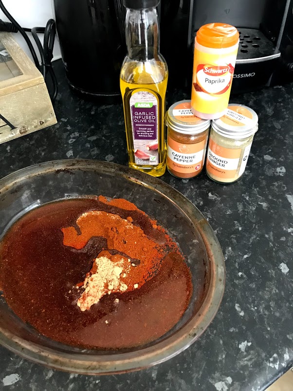 Finally, I made up some piri piri chicken skewers, as I love a bit of spice! The recipe is below (if you don’t like your food too spicy, I’d halve the amount of cayenne pepper as they did have quite a kick!)