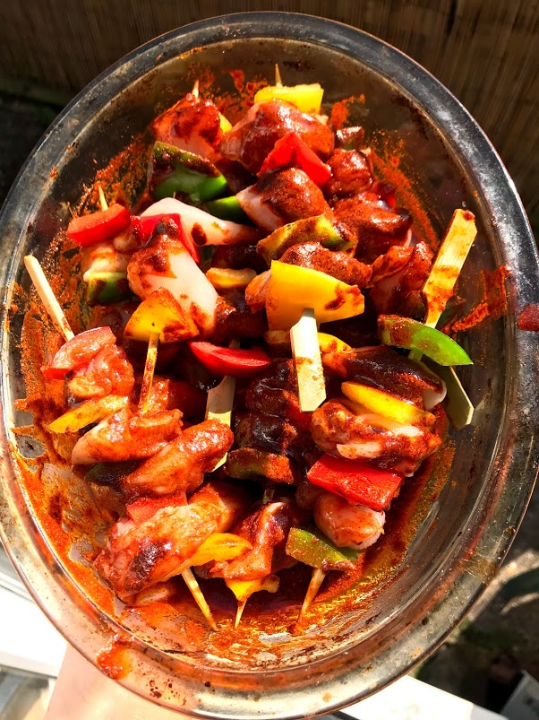 While your barbecue is warming up, place the skewers in the oven for about 10-15 mins to cook the chicken (Gas Mark 5 / 190 degrees). Then finish them off on the barbecue (be sure to coat the remaining chicken with the piri sauce but go careful as the oil will cause the barbecue to go a little wild), until they are slightly blackened and chargrilled! Check one of the skewers to ensure the chicken is cooked, and enjoy!