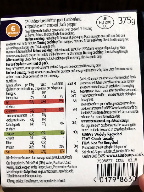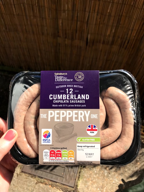 Since starting the low FODMAP diet I have become a slight expert in identifying the foods that contain onion and garlic, however I still get caught out! The other day I went to heat up a packet of Tilda wholegrain rice and quinoa, and by complete chance noticed that it contained onion and garlic. I will stick to the safe Merchant Gourment packets of quinoa in the future, but lesson learnt – always check labels! So for today’s barbecue, I ordered my groceries in advance from Sainsbury’s so that I could check all the ingredients online and avoid the bank holiday rush! As there’s just the two of us today, I ordered sausages, burgers and chicken, to give a little variety.