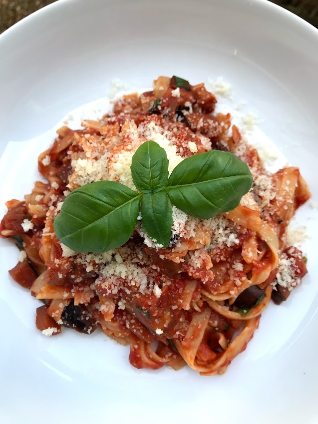 Alternatively, if you’re not a big fan of aubergine, or fancy something a little simpler, you can make the tomato and basil sauce (leaving out the aubergine) to make a delicious pasta pomodoro, below.