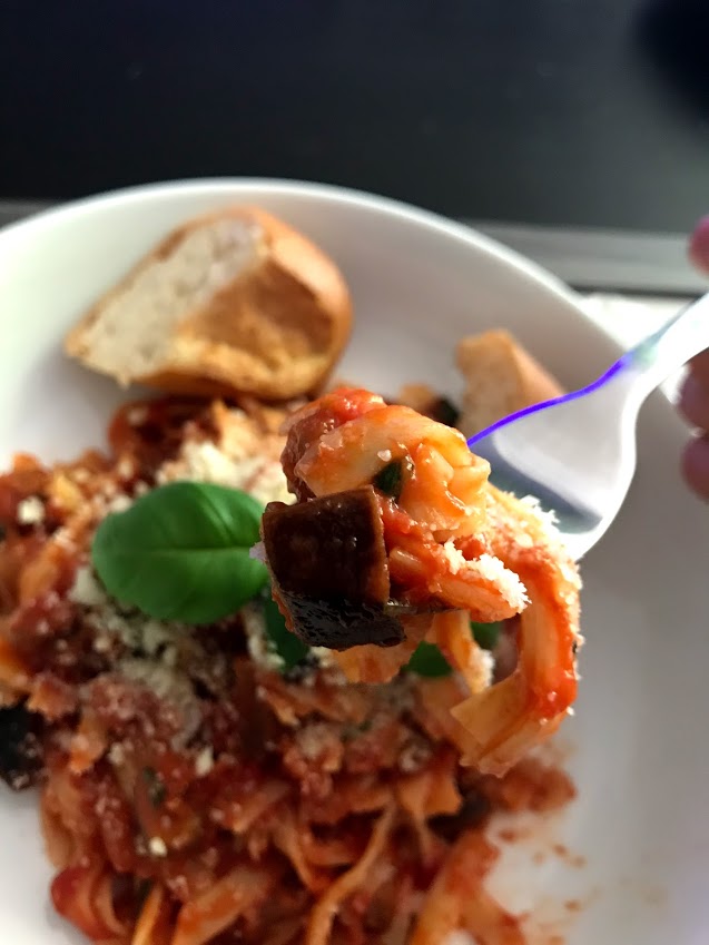I’ve since made this pasta quite a few times, with either penne, spaghetti or fusilli but I think I like it best served with the new gluten free tagliatelle! I’d recommend Asda’s gluten free tagliatelle as others I’ve tried (Sainsbury’s) often breaks into smaller pieces. If you have a bit more time, you may wish to roast the aubergine first, however I quite like it cooked in the garlic oil and tomato sauce. Please note that the recommended serving of tomatoes is 92g as per the Monash app, and this recipe does exceed this, if you need to reduce the amount of tomatoes, replace with some vegetable stock or use fresh tomatoes instead (as these can be tolerated in larger portions).