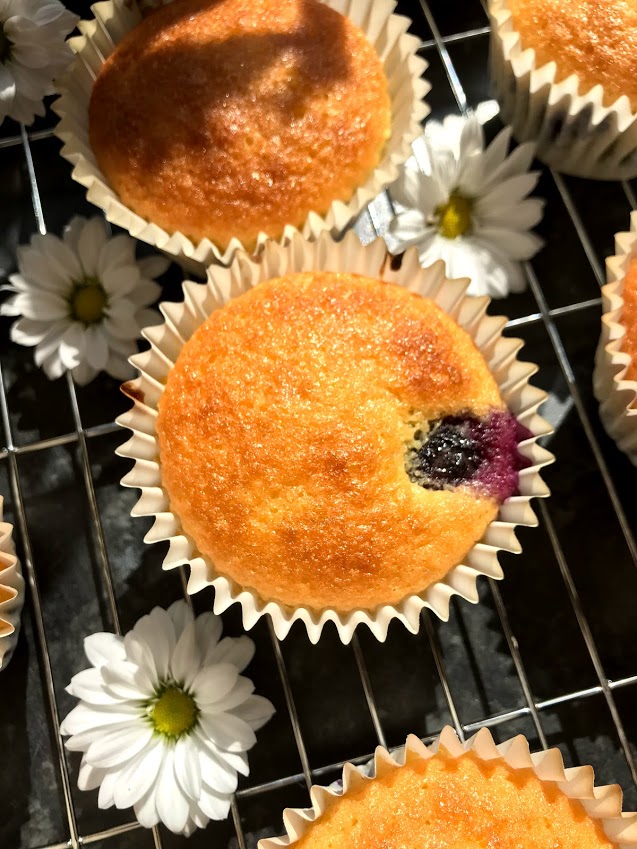 I iced half of these, and left the others plain, as the blueberries give them quite a lot of moisture to begin with. These are best eaten on the day they are made (or the day after) as the fruit can make the cake slightly moist after a while – ideal for a work treat or for breakfast on the go!
