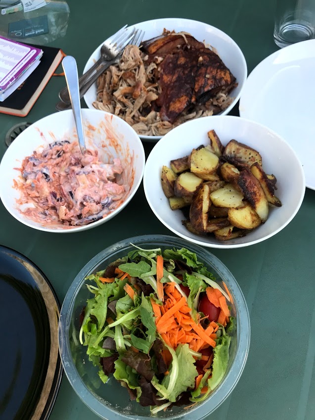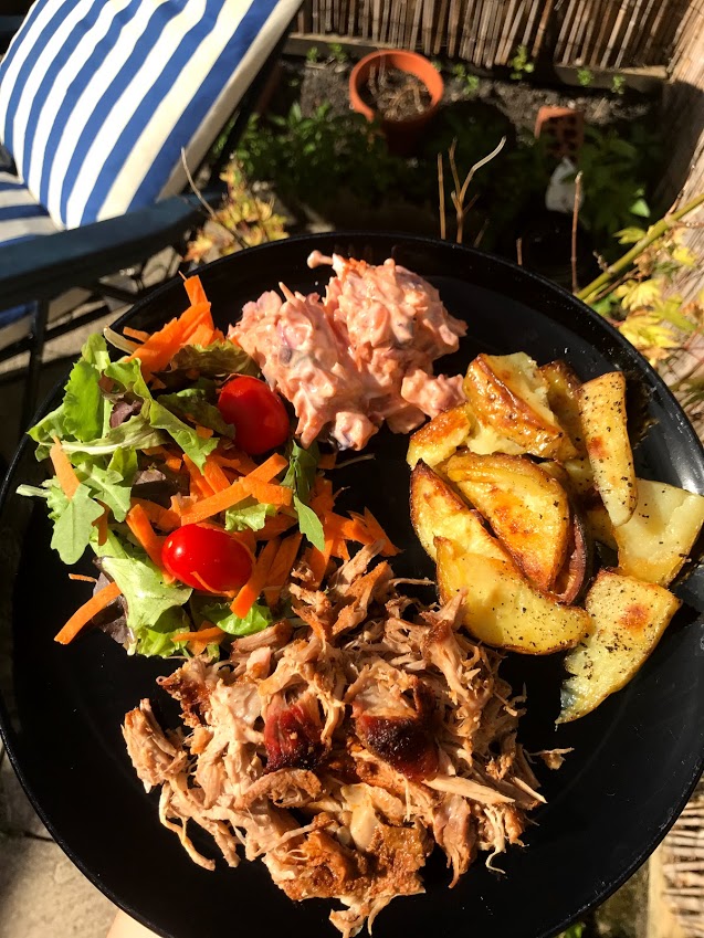 This weekend, as the weather is once again hot and sunny, I’ve had another go at pulled pork, to tweak the recipe before sharing it, and because I really enjoyed it last time (despite it being a little dry)! This time I’m serving it with homemade potato wedges, a light organic salad and a homemade slaw. I’ve tried making low FODMAP coleslaw in the past, however despite red and white cabbage supposedly being low in FODMAPs I had a bit of a stomach ache after. This time I’ve fried the cabbage in garlic infused oil to soften it, and to hopefully make it more digestible. I then added grated carrot to the pan until all of the veg has softened. Once cool I stirred in lactose-free yoghurt, paprika and chilli flakes to taste. It goes so well with pulled pork!